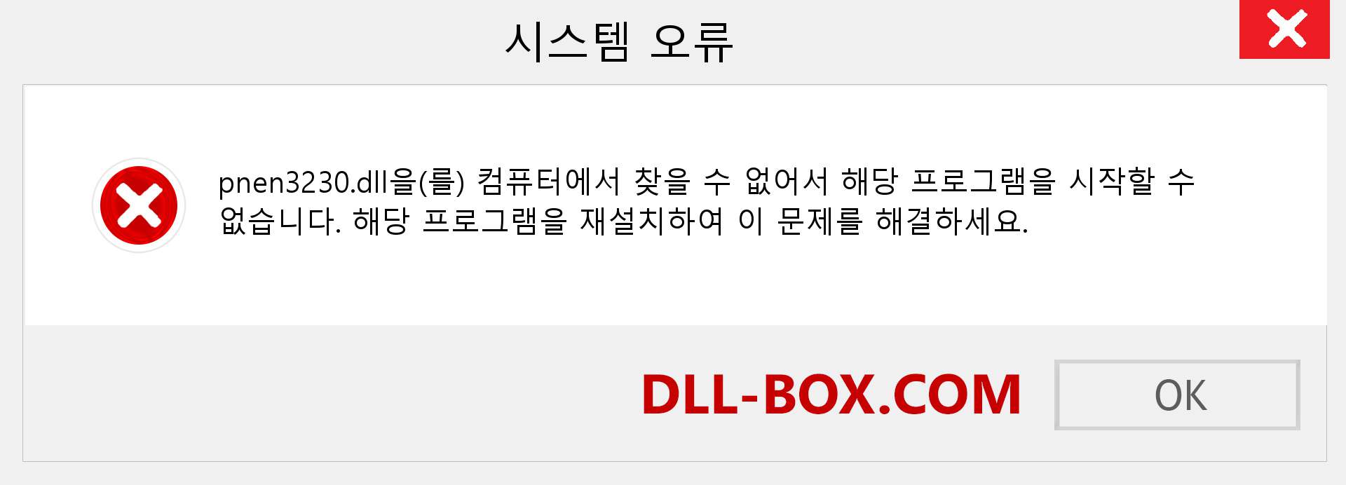 pnen3230.dll와(과) 관련된 오류는 몇 가지 다른 이유로 발생할 수 있습니다. 예를 들어, 결함이 있는 응용 프로그램 pnen3230.dll가 삭제되거나 잘못 배치되었거나 PC에 있는 악성 소프트웨어 또는 손상된 Windows 레지스트리로 인해 손상되었습니다.